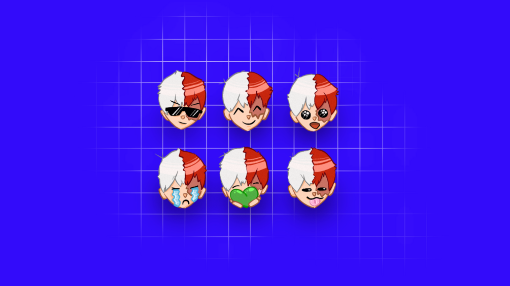 A tiny pack of emotes featuring Shoto Todoroki 轟焦 from My Hero Academia. Emotes are 512px and transparent ready to use on Twitch, Slack or Discord.